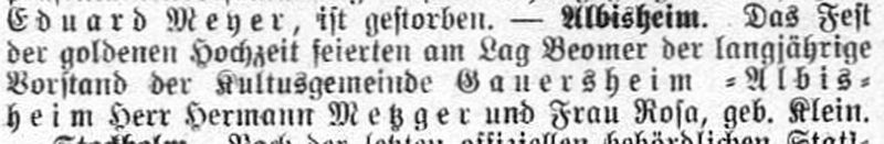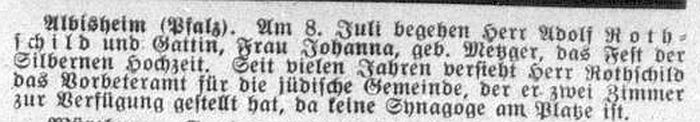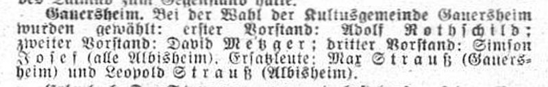 bildeten die Albisheimer Juden mit der Israelitischen Kultusgemeinde im