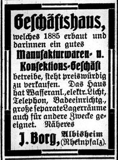 Erstmals wird 1699 Judt Süßkind erwähnt, der in Albisheim einen Kramladen