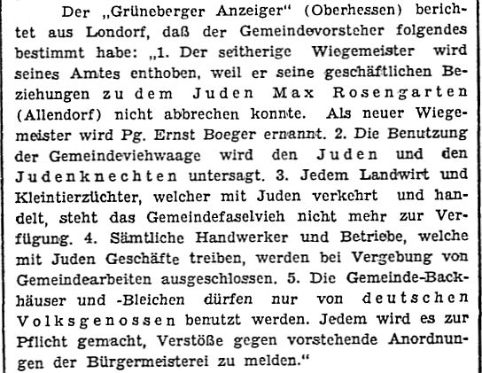 zu ermorden.' Seit dieser Zeit sei jüdisches Leben in Allendorf erloschen.