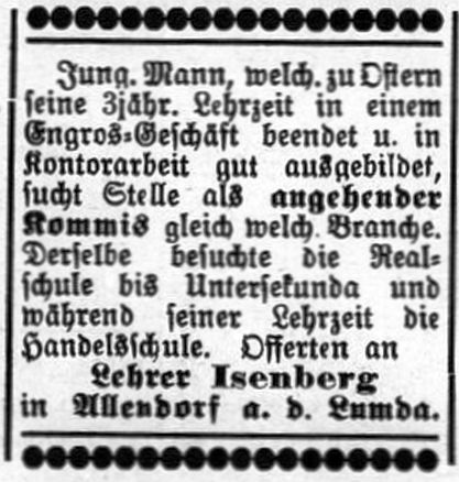 den Kriegseinsatz ausgezeichnet wurden: Bankbeamter Ludwig Isenberg (Sohn des