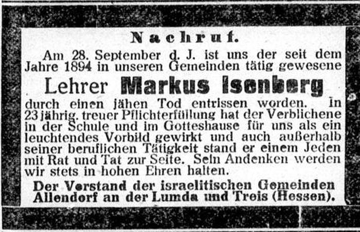Lehrer Marcus (Markus) Isenberg in Allendorf (siehe unten).