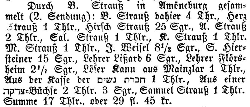 Von den Gemeindevorstehern werden genannt: um 1860 Salomon Strauß, um
