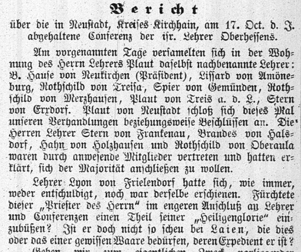 und seitdem (bis 1874) Lehrer der jüdischen Kinder von Amöneburg und Kirchhain.