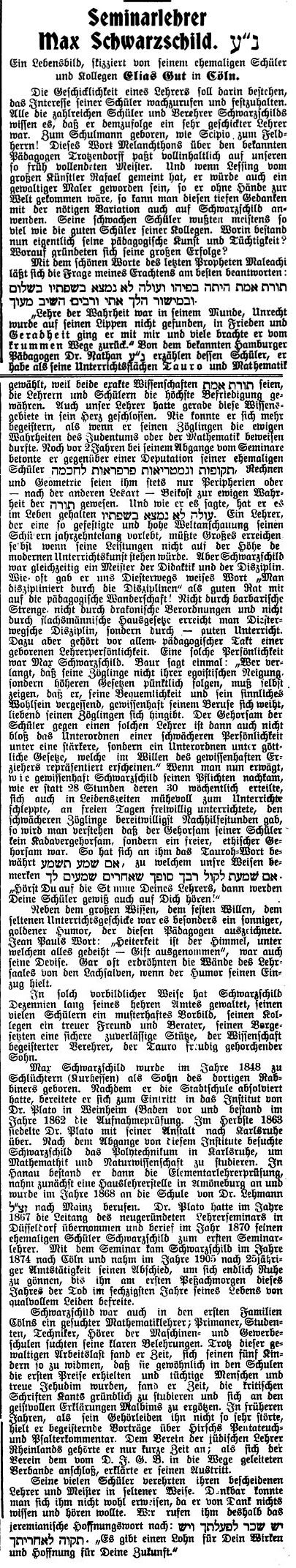 später Lehrer an den jüdischen Lehrerseminaren in Düsseldorf und Köln. Wo bzw.