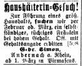 Westfälin bevorzugt. Waschfrau vorhanden.