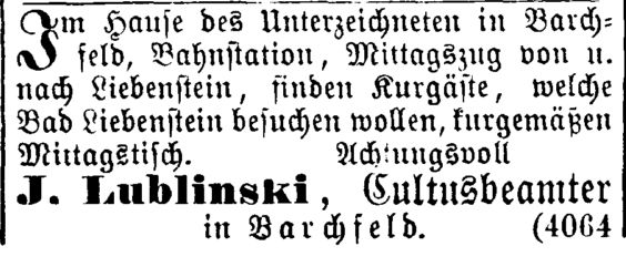 führte spätestens seit 1881 das Restaurant in Bad Liebenstein. Er starb um