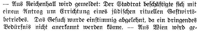 Um 1930 gab es die beiden koscheren Restaurationen Bermann und Brandeis. In