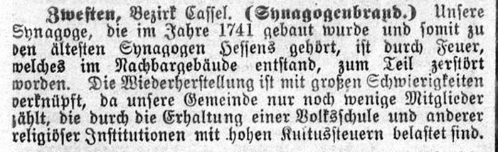 Hesse-Nassau. The community dedicated a synagogue in 1741 (rebuilt in 1914) and