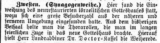 gehörten zur Gemeinde in Zwesten: Niederurff (1835 76 jüdische
