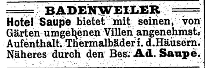 Seit 1891 (Gewerbeanmeldung bei der Gemeinde im Mai 1891, s.u.) wirkte in Badenweiler der später weltberühmte Arzt Albert Fraenkel (s.u.). Er
