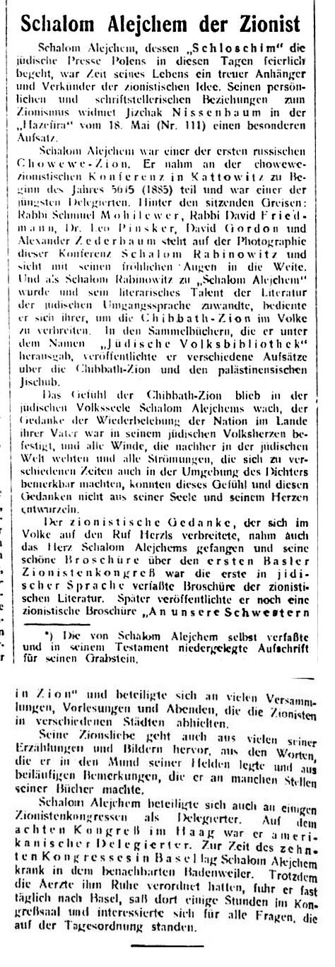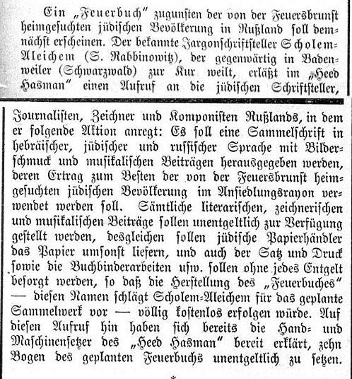 wie u.a. die Berichte über den bekannten jüdischen Schriftsteller Scholem Alejchem