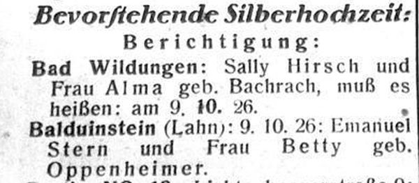 Balduinstein (Lahn): 9.10.1926: Emanuel Stern und Frau Betty geb.