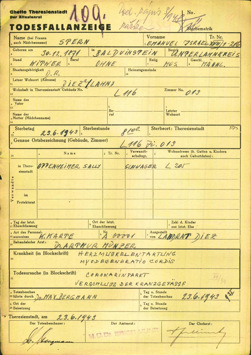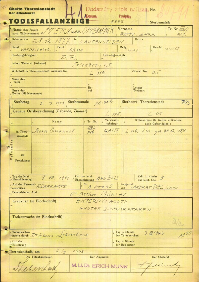 das Ghetto Theresienstadt, wo sie am 3. März 1943 umgekommen ist), Emanuel