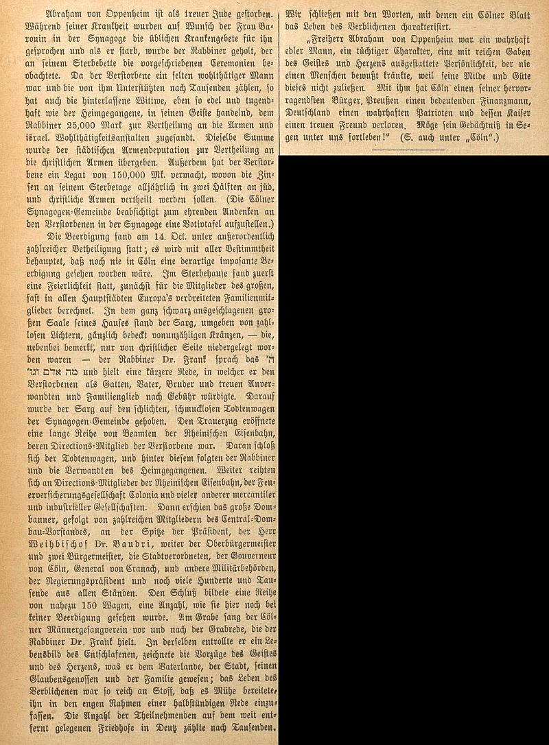 Oppenheim am 9. Oktober 1878 (Beisetzung zunächst im Deutzer Friedhof)