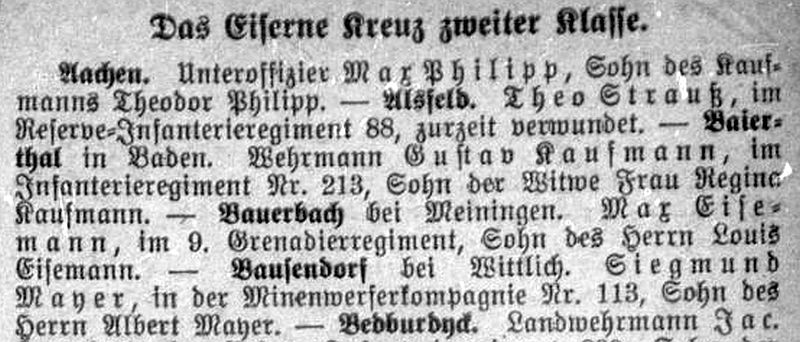Neuerburg gef. 10.8.1916) und Julius Levi (geb. 15.2.1892 in Bausendorf, gef.