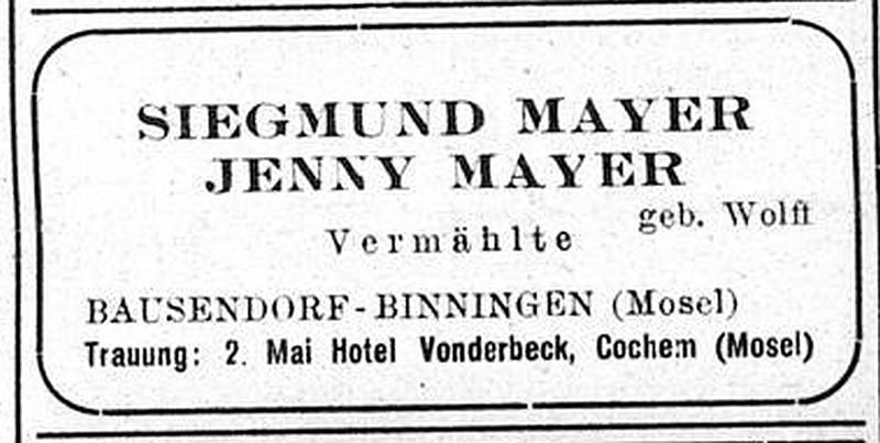 Norbert Mayer (1907), Sara Mayer (1866), Siegmund Mayer (1895), Berthold Schmitz
