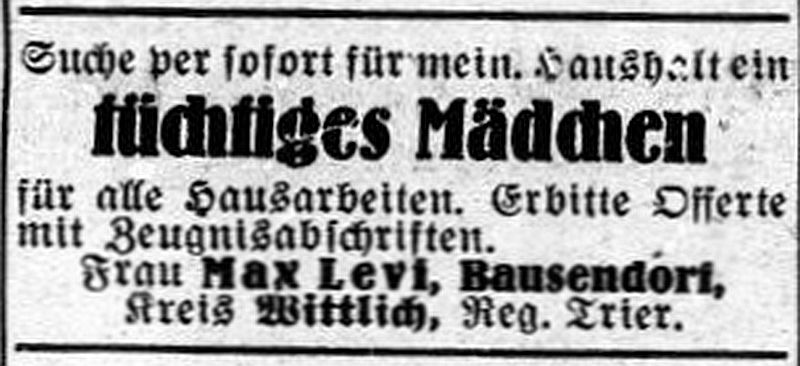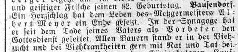 "Israelitischen Familienblatt" vom 15. Juli 1926: "Bausendorf. Ein