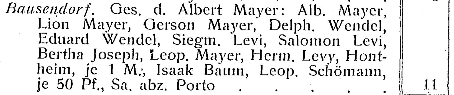 Jahresbericht des Israelitischen Waisenheimes Bad Ems 1906: "Bausendorf. Gesammelt durch Albert Mayer: