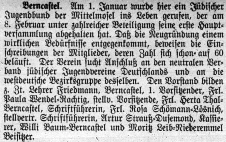 (Unterstützung Hilfsbedürftiger), ein "Jüdischer Jugendbund der Mittelmosel"