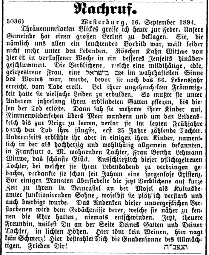 unseren Oberrabbiner, Herrn Kahn aus Trier, auf die feierlichste Weise