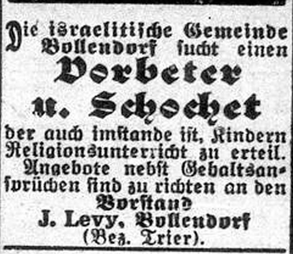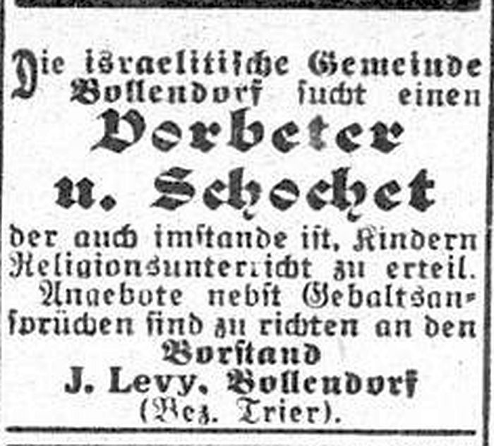 In dem an der Grenze zu Luxemburg liegenden Bollendorf bestand eine jüdische