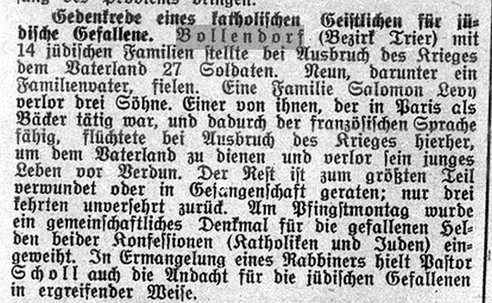 Bollendorf, gef. 19.9.1915). Außerdem ist Albert Levy (geb. 5. Februar 1891 in