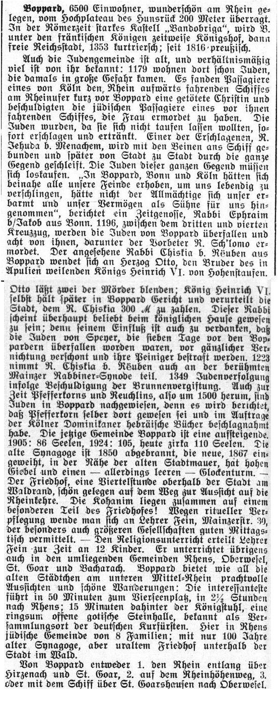 der Stadt genannt (1461 oder 1462). Wenige jüdische Personen aus Boppard werden