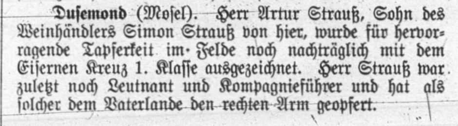 15.4.1891 in Dusemond, gef. 27.8.1914) und Vizefeldwebel Edmund Strauß (Sohn des