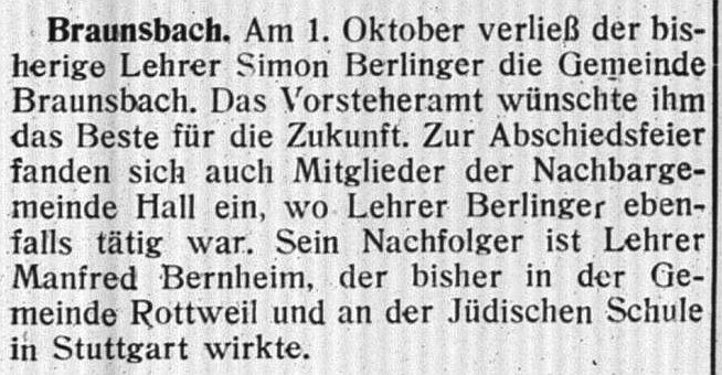 Braunsbachs). 1913 wurde das Rabbinat nach Schwäbisch