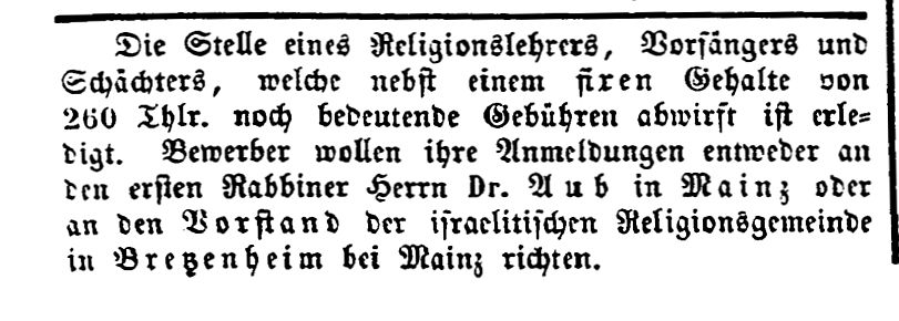 Schochet tätig war (siehe Ausschreibungen der Stelle unten zwischen 1859 und 1876).