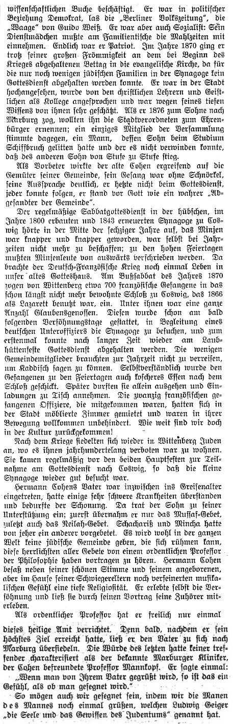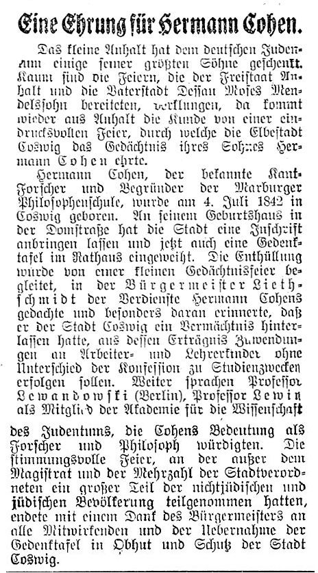 in der "Allgemeinen Zeitung des Judentums" vom 10. Mai 1918: "Aus Hermann
