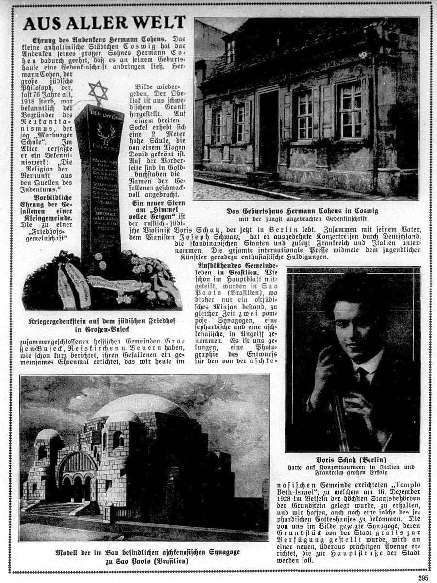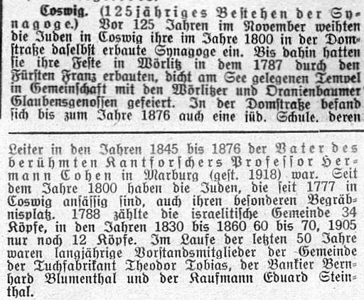 Texte zur jüdischen Geschichte in Coswig aus jüdischen Periodika des