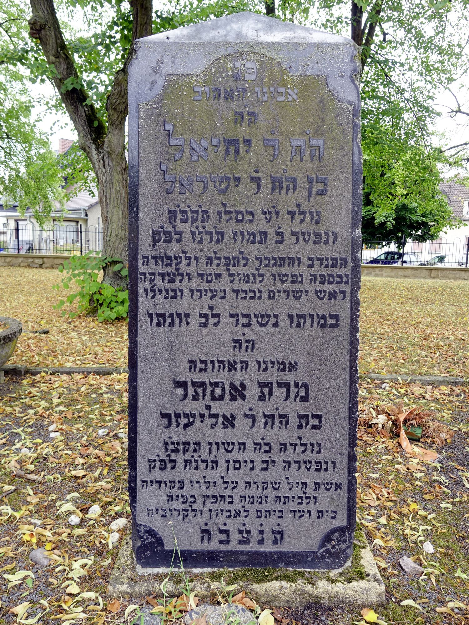 Grabsteines Steinthal für "Jechiel ben Israel" und "Ester bat Elieser"