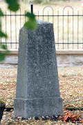 drei verwitterte Grabsteine auf. Entziffern lassen sich die Inschriften