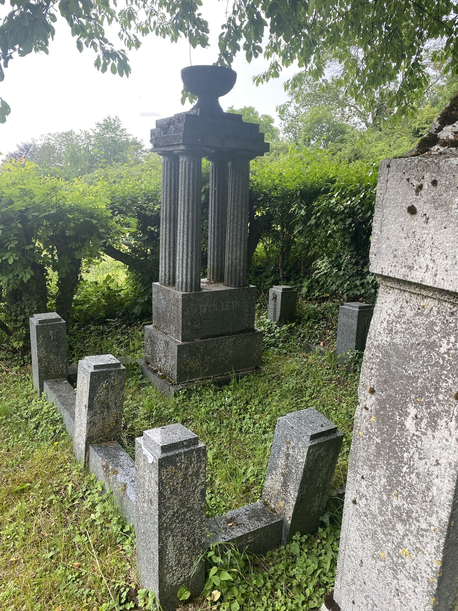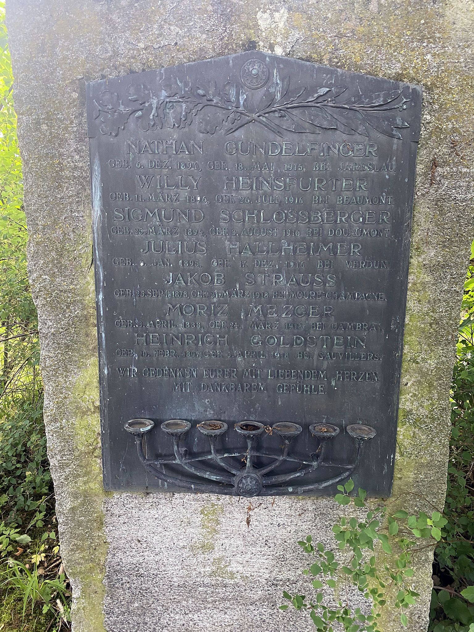 Auf dem Friedhof befinden sich eine Gedenktafel für die sieben jüdischen Gefallenen des