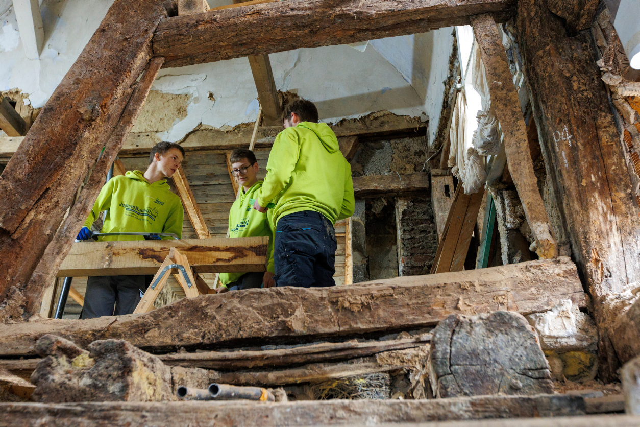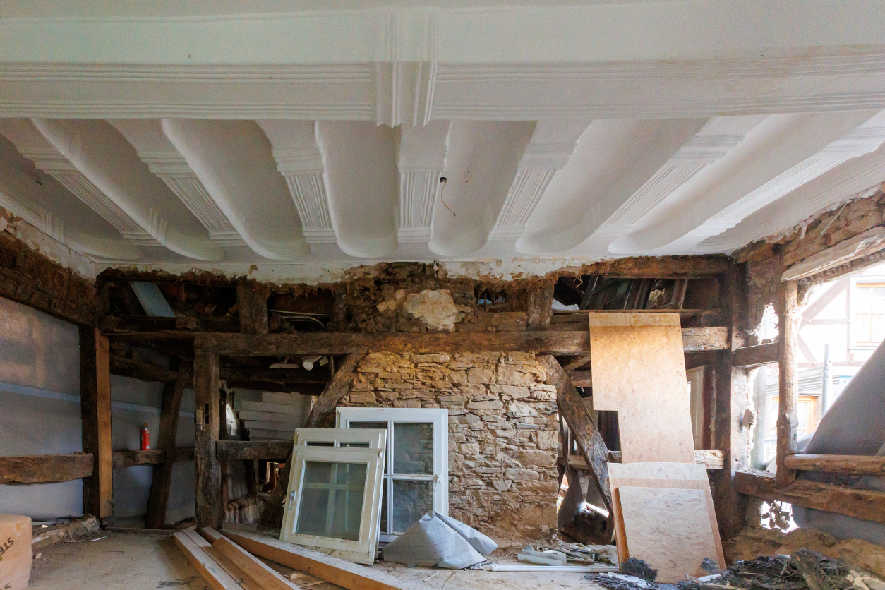 schadhaften Stellen am Fachwerk des Gebäudes instand zu setzen. Während des