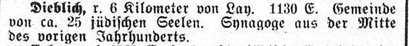 Allgemeine Mitteilungen zur jüdischen Geschichte in Dieblich