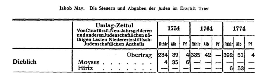 Abgaben von Juden in Dieblich in der
