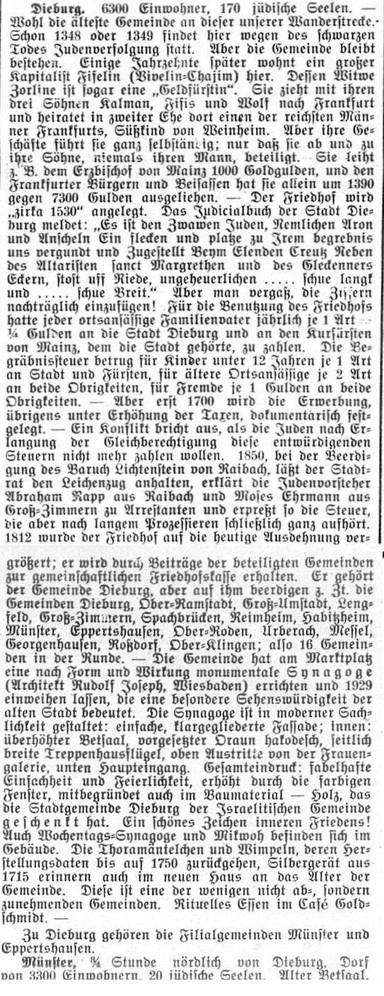 Dieburg genannt. Seitdem lebten vermutlich ununterbrochen bis 1452 Juden in der
