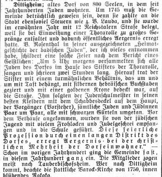 jüdischen Augen durch deutsche Lande - Neckar-Tauber-Main-Wanderung): "Dittigheim;