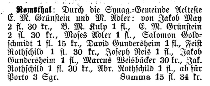 Einwohner zunächst kräftig zu. Es wurden gezählt: in Romsthal 1853 84 jüdische Einwohner,