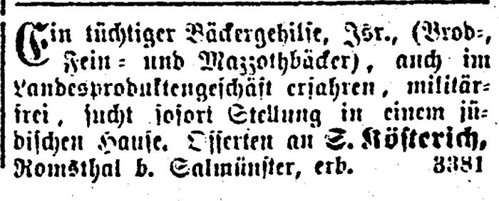 jüdischen Familien in Eckardroth und Romsthal an gemeinsamen Ausschreibungen