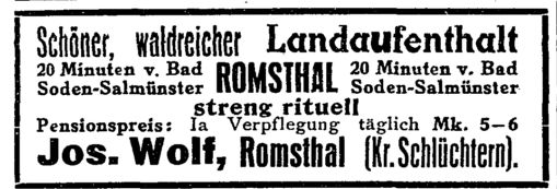 1933 lebten noch etwa 20 jüdische Personen in Romsthal. In