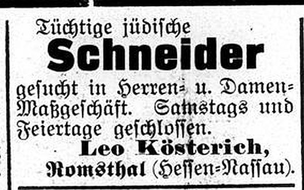 Dörfer bedeutende Läden, die jüdischen Familien gehörten (s.u. Anzeige des