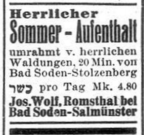 im "Israelitischen Familienblatt" vom 1930: "Herrlicher Sommer-Aufenthalt