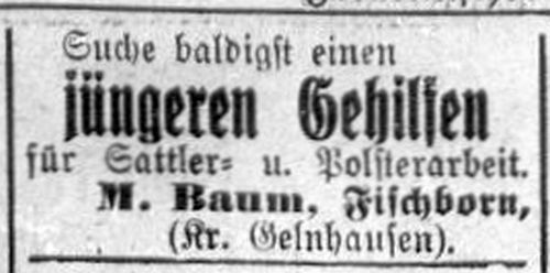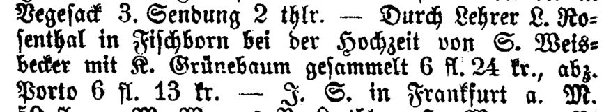 war. Um 1869/70 wird als Lehrer in Fischborn L. Rosenthal genannt. Als die Zahl