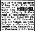 Religionslehrer angestellt, der zugleich als Vorbeter und Schochet tätig war (siehe Ausschreibungen der Stelle unten).