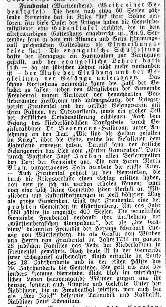 aufgeteilt wurde, blieb Freudental weiterhin Rabbinatssitz.
