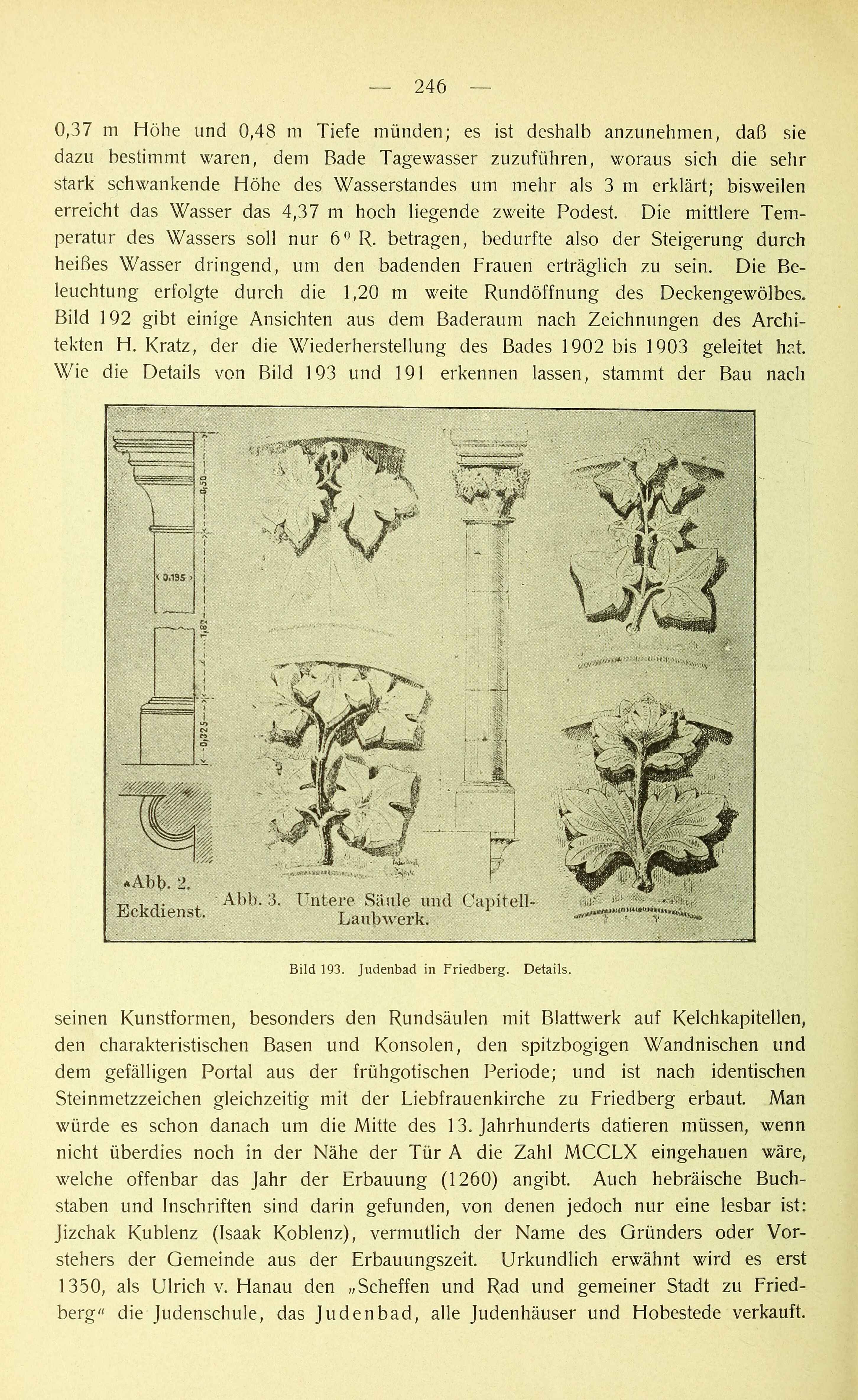 mehrere mit Laubwerk geschmückte Säulen mit Kapitellen. Beim Bau des Judenbades waren