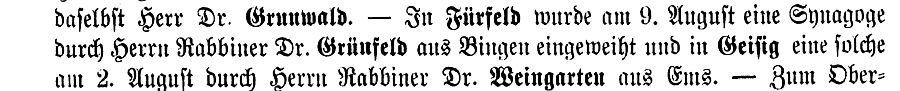 Geisig eine solche am 2. August durch Herrn Rabbiner Dr. Weingarten aus